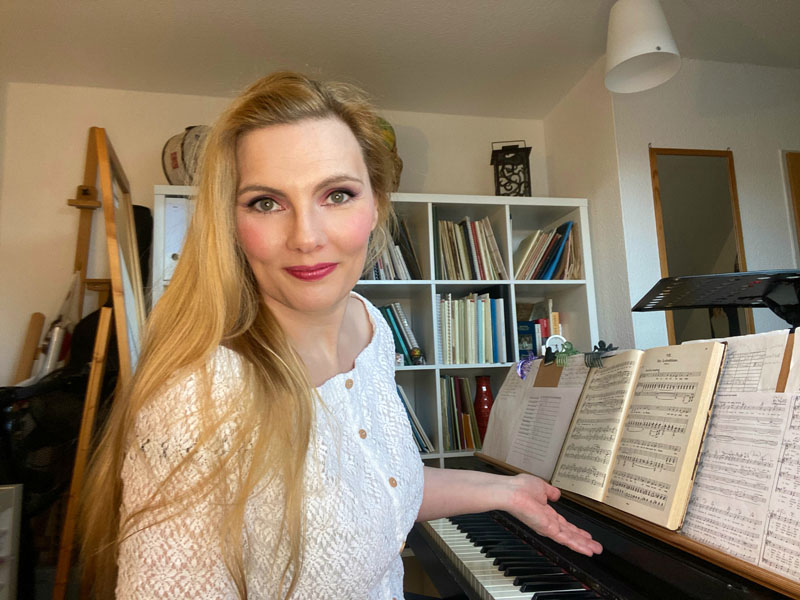 Durch die kleine, aber nicht zu vermeidende Zeitverschiebung (Latenzzeit) ist es nicht möglich, dass ich dich bei deinen Stücken live am Klavier begleite und du dazu singst. Dies ist aber kein Problem, da ich dir deine Begleitmusik und deine Texte als Playback per Mail zusende und du diese dann bei dir abspielst, bzw. ausdruckst. Nutze dafür ein separates Gerät, z.B. dein Handy, wenn du deinen Laptop für unseren Videochat parallel nutzt. Bei Gesangsübungen und zum Einstudieren von neuen Stücken ist die Latenzzeit aber kein Problem und ich nutze mein Piano.